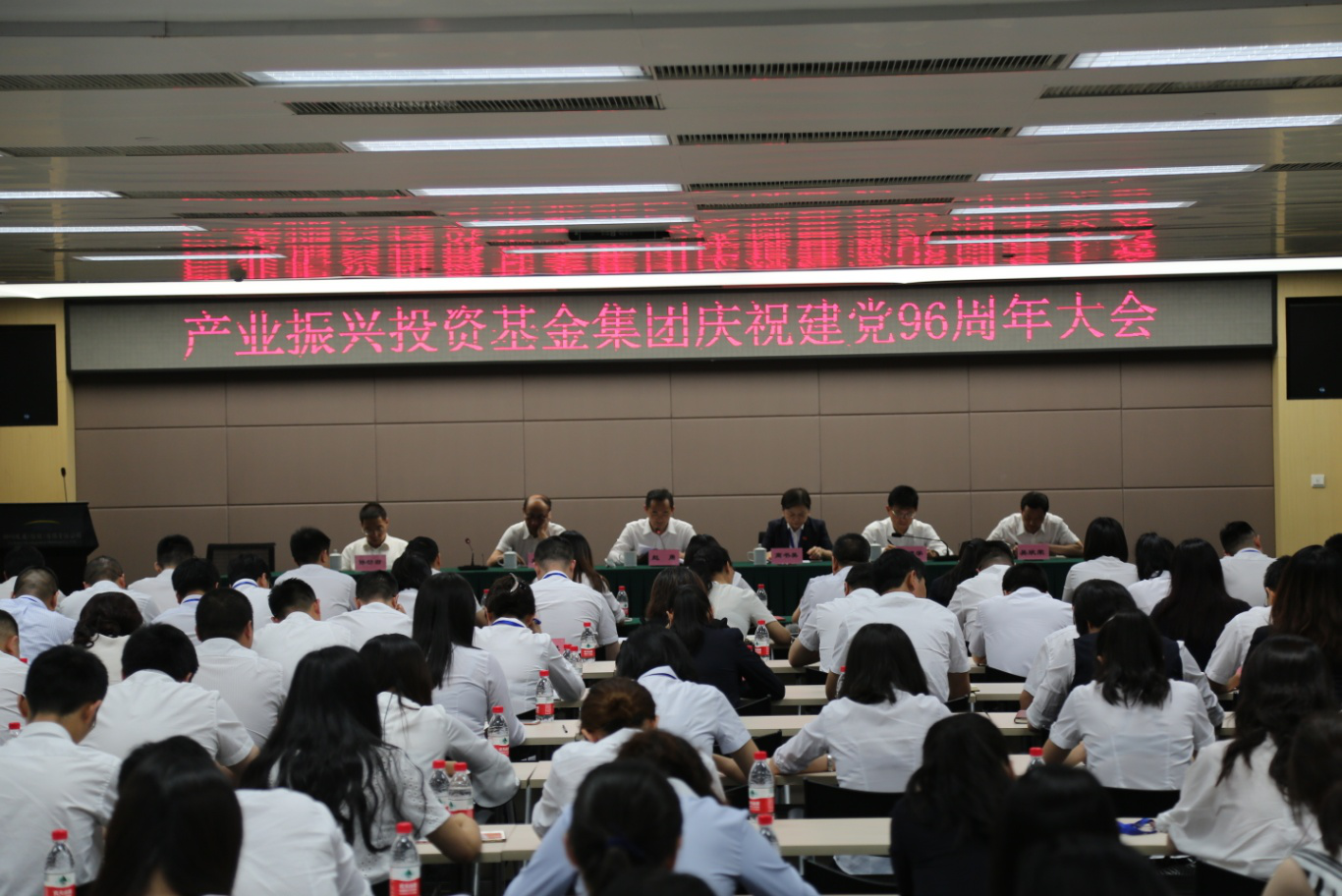 2017年6月28日,产业振兴投资基金在14楼会议室举行庆祝中国共产党成立96周年“七一”表彰大会暨推进“两学一做”学习教育工作会。党委书记、董事长赵勇同志作了讲话。会议由党委委员、纪委书记吴进学同志主持。党委委员、董事、工会主席高书美同志宣读表彰决定。公司领导、部门和旗下机构负责人以及全体党员和员工参加会议。