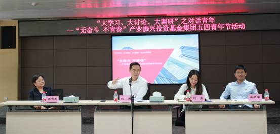 5月4日,四川产业振兴发展投资基金有限公司举办“大学习、大讨论、大调研”之对话青年——“无奋斗·不青春”五四青年节主题活动。党委书记、董事长赵勇就贯彻落实习近平总书记在北京大学师生座谈会上重要讲话精神和省委“大学习、大讨论、大调研”部署安排,对集团青年员工提了要求。党委副书记刘嘉主持活动,党委委员、工会主席高书美,党委委员、纪委书记吴进学参加活动并与青年进行了对话交流。