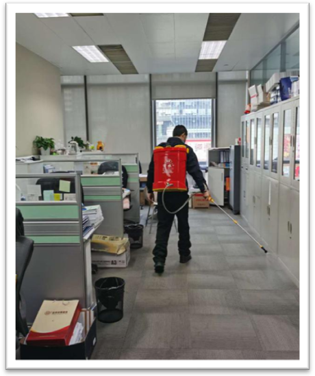 办公室组织人员对公共区域和办公区域进行全方位消杀