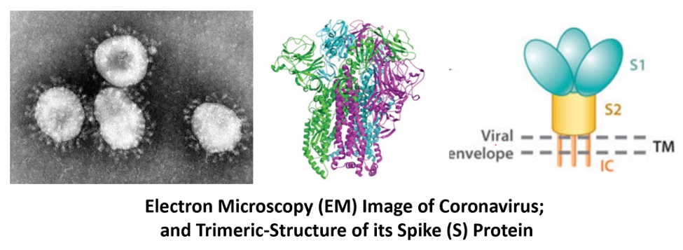 冠状病毒的电镜图像及其穗蛋白的三聚体结构