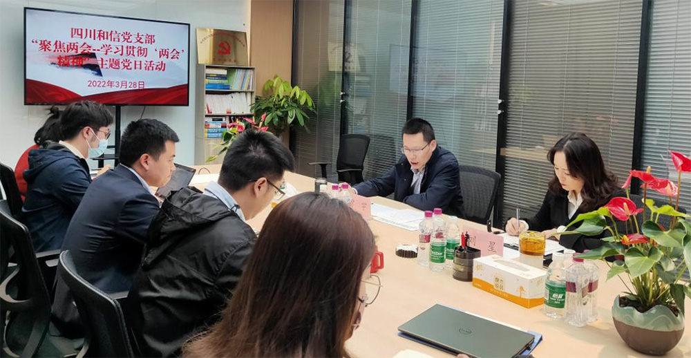 为深入学习贯彻全国两会精神,凝聚团结奋进力量,3月28日,四川和信开展“聚焦两会精神,鼓足干劲谋发展”主题党日活动,会议由公司党支部书记、董事长曾宇主持,公司全体党员员工参加。