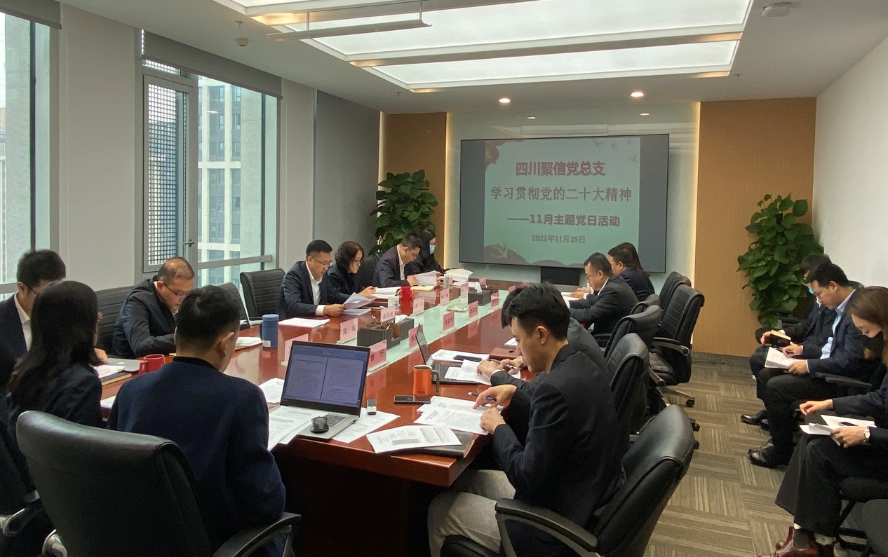 11月25日,四川聚信党总支组织开展了“学习贯彻党的二十大精神”主题党日活动。会议由公司党总支书记、董事长、总经理吴军主持,公司领导、全体党员、各部门负责人参加了会议。