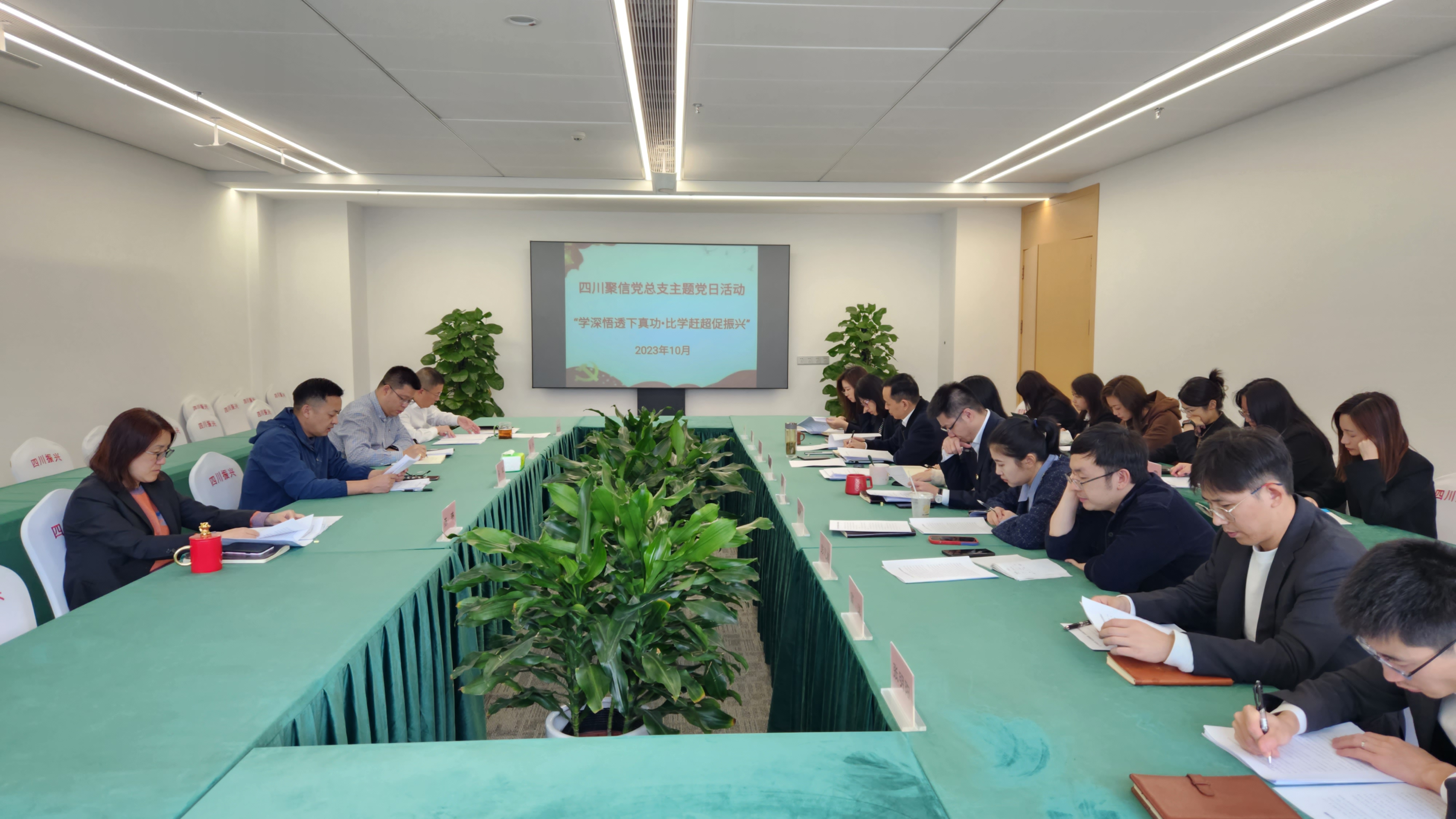 2023年10月26日,四川聚信党总支举行了“学深悟透下真功·比学赶超促振兴”10月主题党日活动。会议由公司党总支书记、董事长吴军主持,全体党员参加。