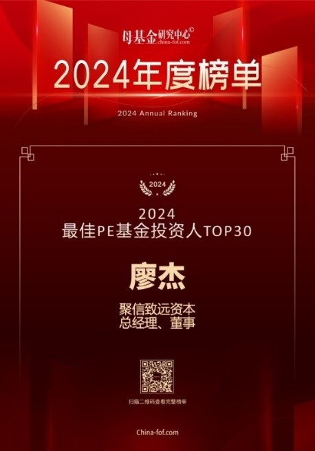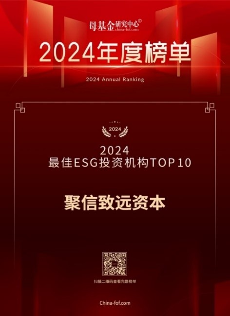 12月9日,母基金研究中心2024年度榜单揭晓,四川聚信致远私募基金管理有限公司凭借深厚的行业积淀和长期价值投资理念,在ESG项目投资领域取得的优异成绩,荣获母基金研究中心“2024年最佳ESG投资机构TOP10”“2024年最佳PE基金TOP50”殊荣,董事、总经理廖杰荣获“2024年最佳PE基金投资人TOP30”