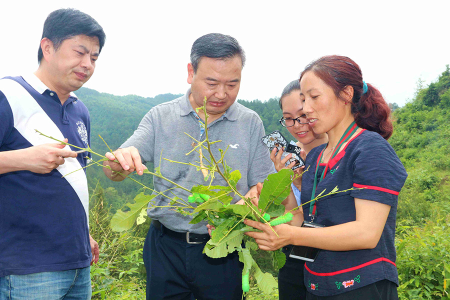 2019年7月,程明在巴中市巴州区寺岭镇贺家河村指导柞蚕养殖。