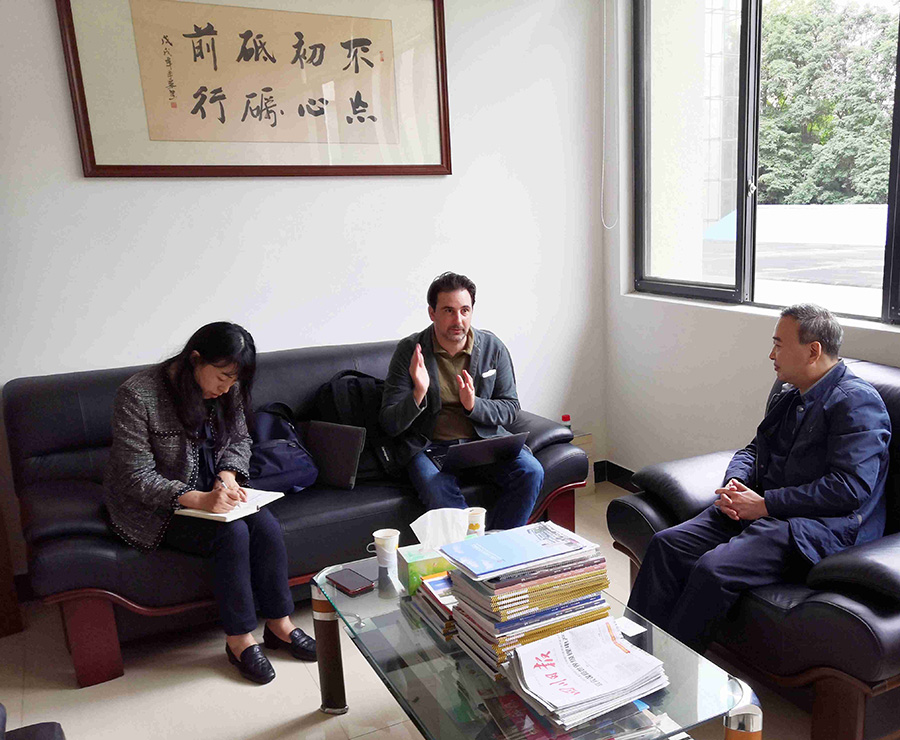 2022年3月,程明与欧洲友善环境(有机)认证机构(ICEA)代表商讨丝绸出口产品技术标准。