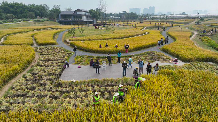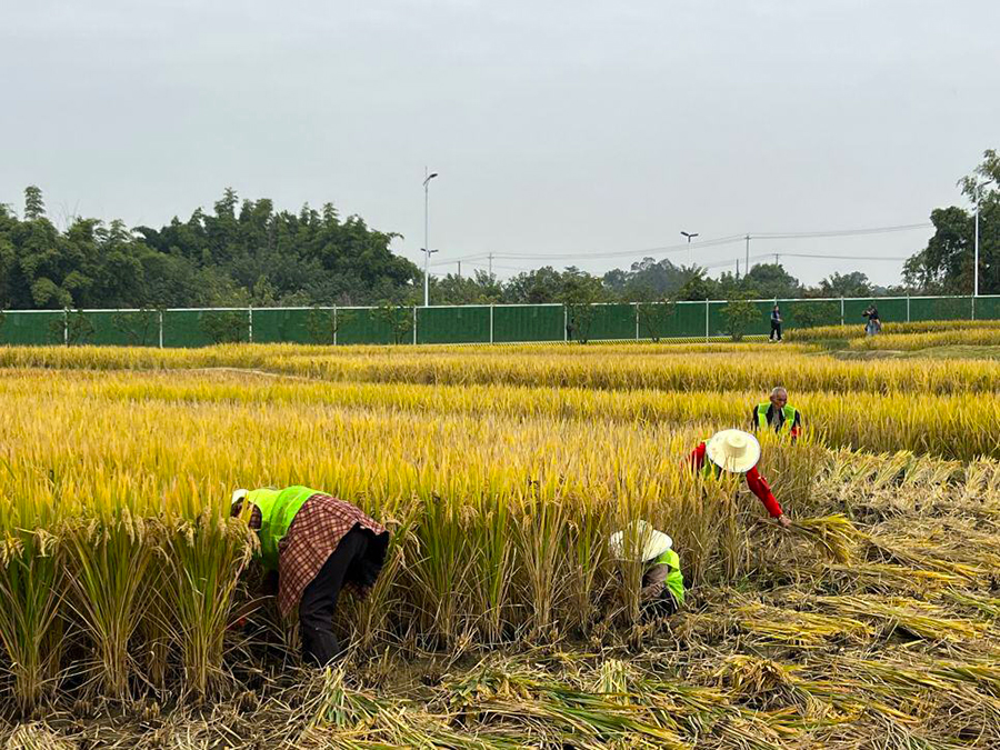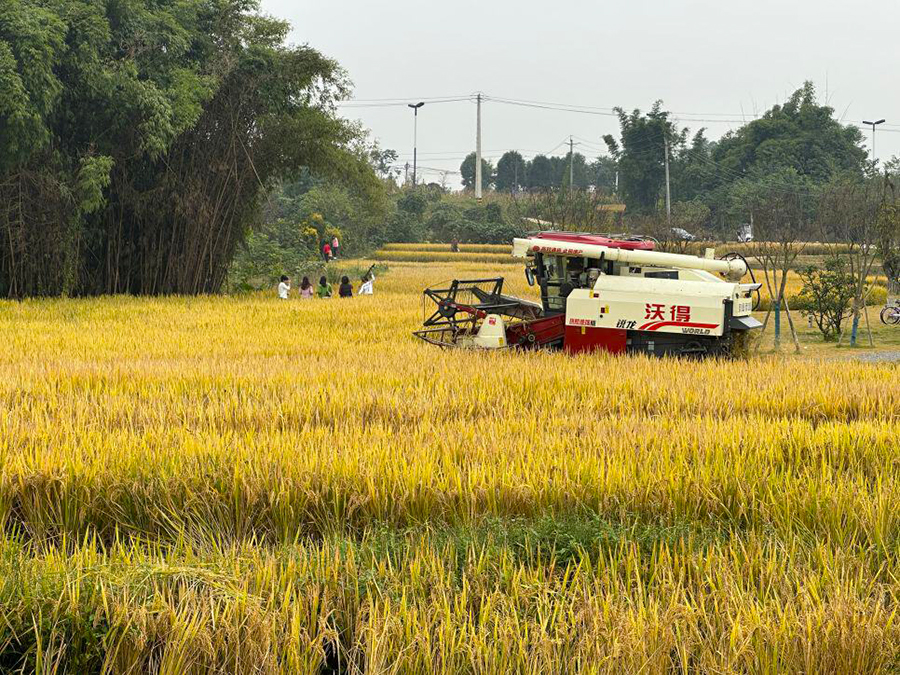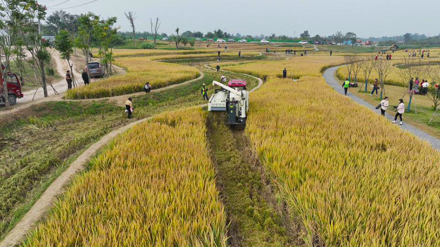 秋风飒爽稻花香,又迎一年丰收季。进入十一月,水稻迎来收获期,龙泉驿区同安街道阳光村天府阳光稻田示范区抢抓晴好天气收割成熟水稻,收割现场一片热闹非凡。