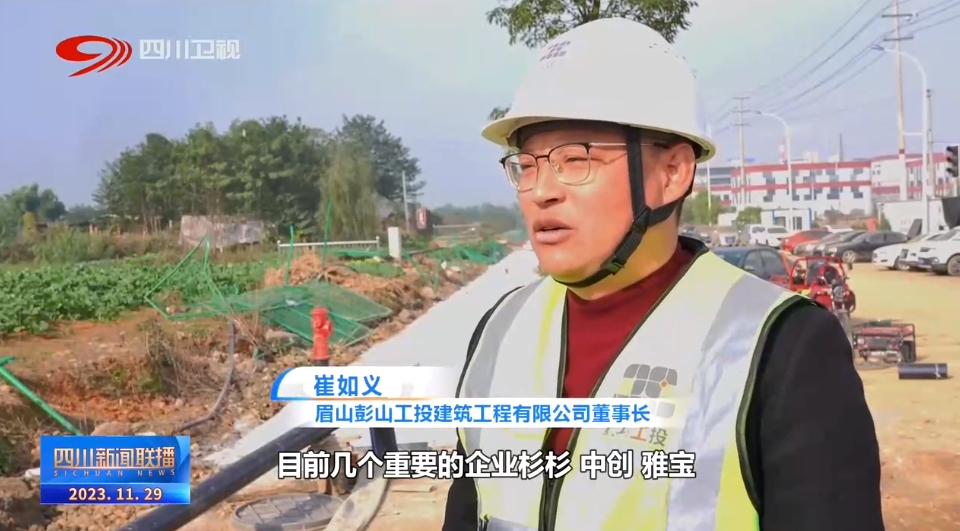 眉山彭山工投建筑工程有限公司董事长 崔如义:给企业预留了18个接口,目前这个几个重要的企业杉杉、中创、雅宝基本上都已经全部支线全部接通完成。
