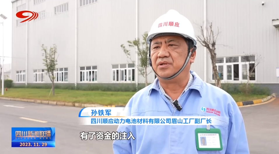 四川顺应动力电池材料有限公司眉山工厂副厂长 孙铁军:有了资金的注入,大大缓解了当时我们的资金压力,加快了科技创新成果就地转化,同时也为后续二期规划打下基础。