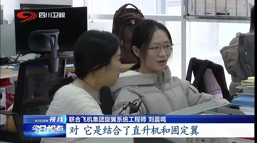 联合飞机集团旋翼系统工程师 刘晨鸣:对, 它是结合了直升机和固定翼,应该是算最先进的一种构型,它在航时航程方面会有很大的一个改进。无人的国际上都没有。