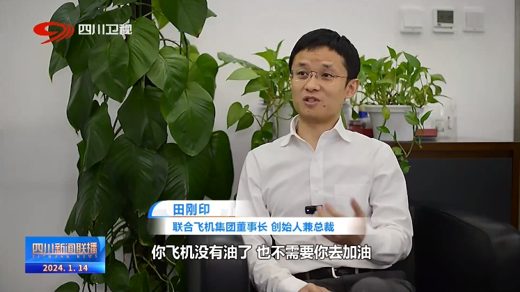 联合飞机集团董事长、创始人兼总裁 田刚印:你飞机没有油了,只要你给它一个授权,它自己就飞到加油站去加油;它需要比如定期维护了,你只要给它一个授权,然后它自己晚上就飞过去,维护完了早晨再给你飞回来。所以从驾驶到空中的管理,到最后的售后维保全是智能化的。