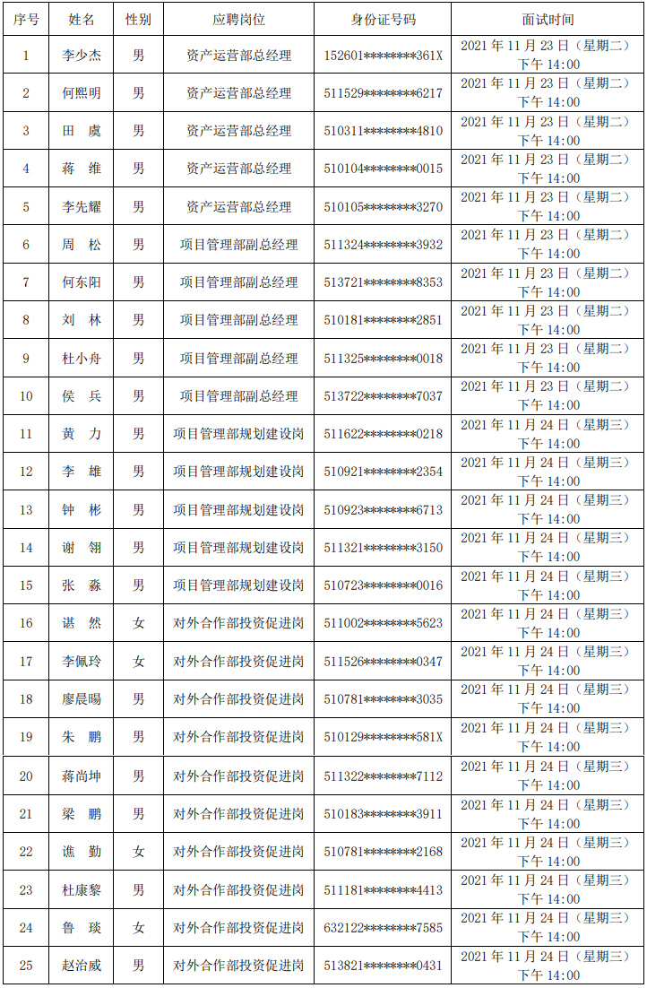 第二批次:项目管理部规划建设岗、对外合作部投资促进岗,2021年11月24日(星期三)下午14:00。