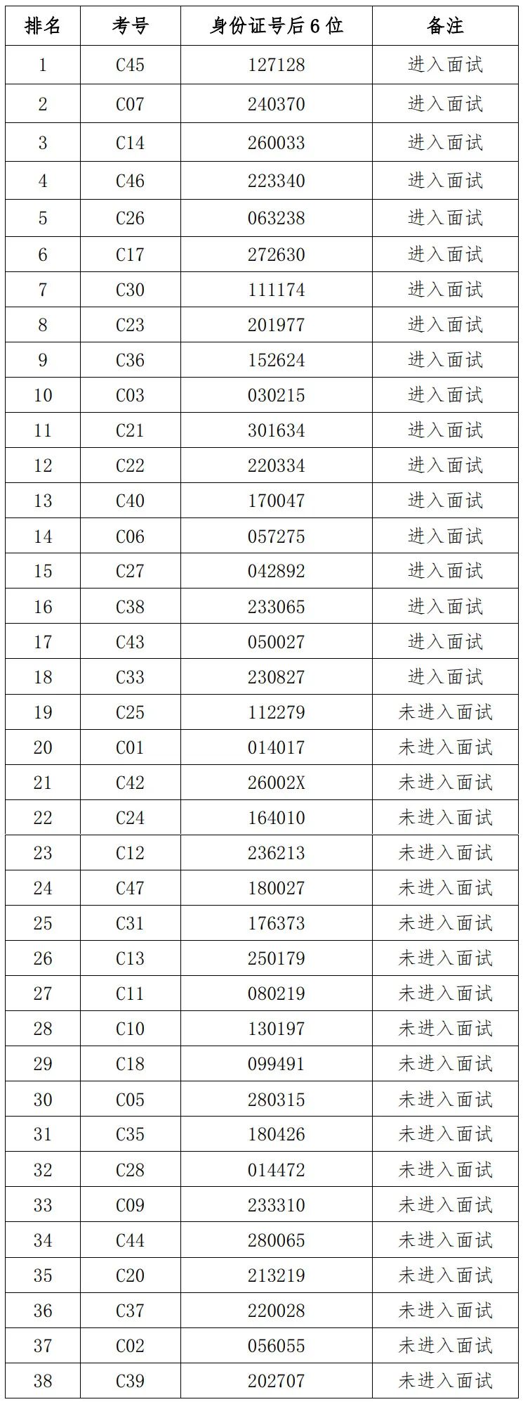 请参加面试的人员携带本人身份证原件及复印件,提前45分钟到考场校验。开考30分钟后,不得进入考场。面试顺序由现场抽签决定。