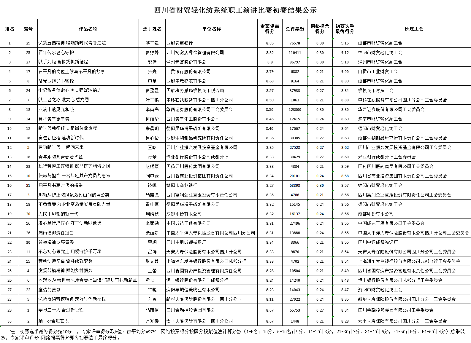 附件:四川省财贸轻化纺系统职工演讲比赛初赛结果公示名单