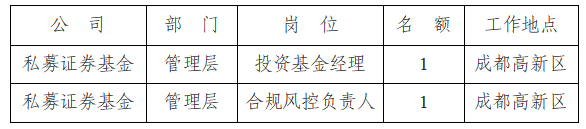 四川产业振兴发展投资基金有限公司(以下简称“四川产业基金”)拟新设私募证券基金管理有限公司(以下简称“私募证券基金”),根据业务发展需要,现面向社会公开招聘私募证券基金工作人员,有关事项公告如下。