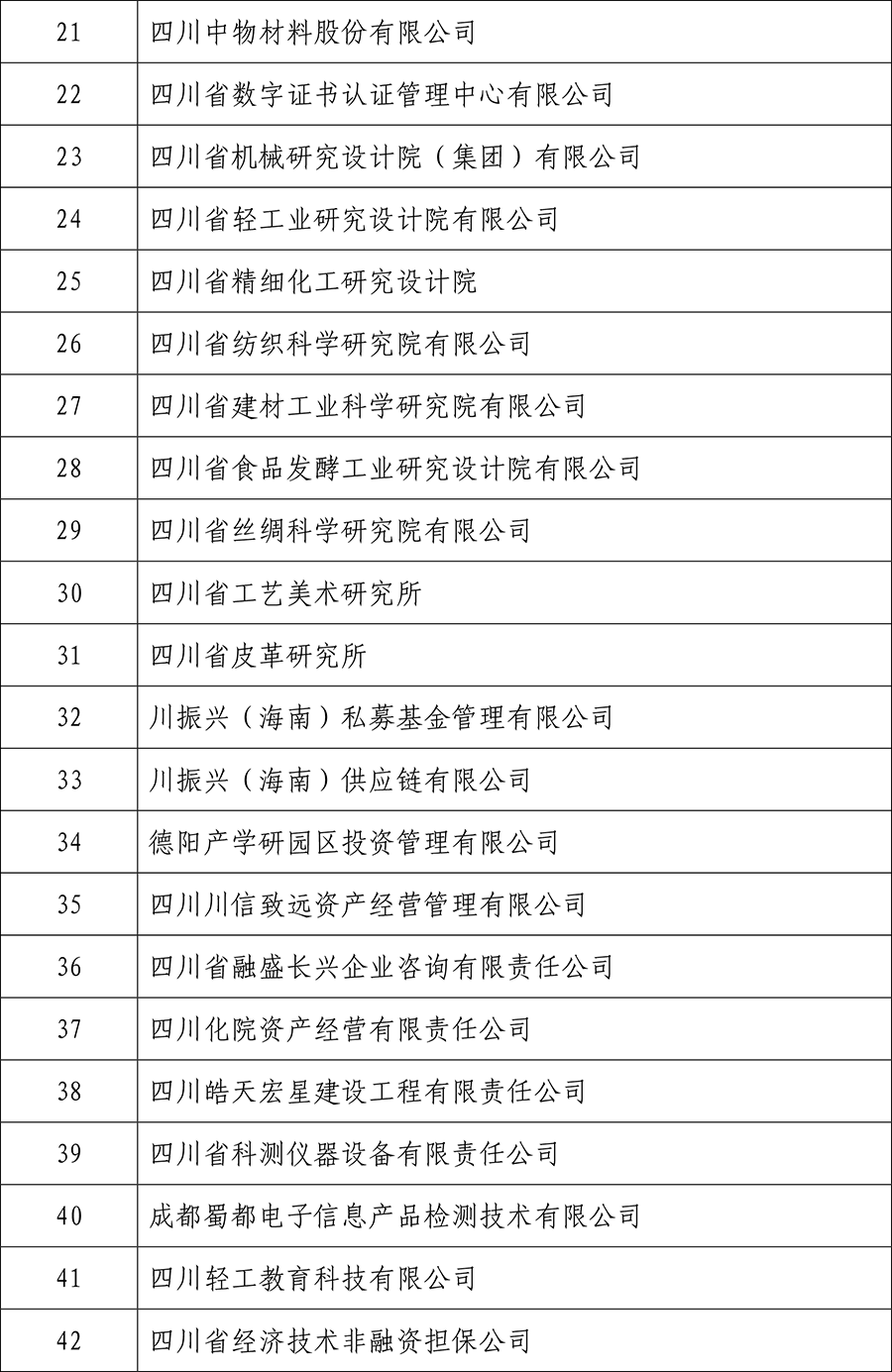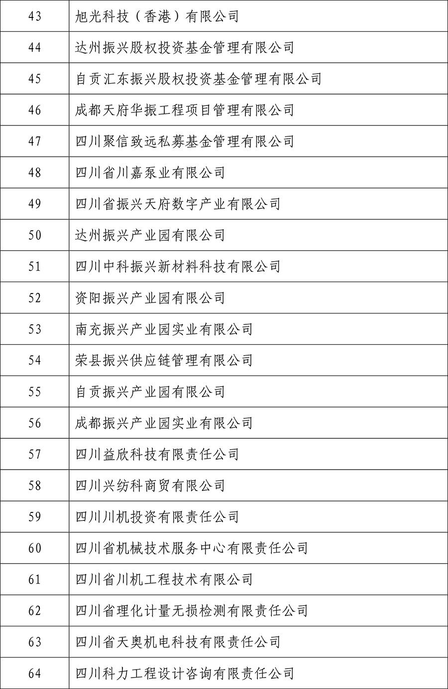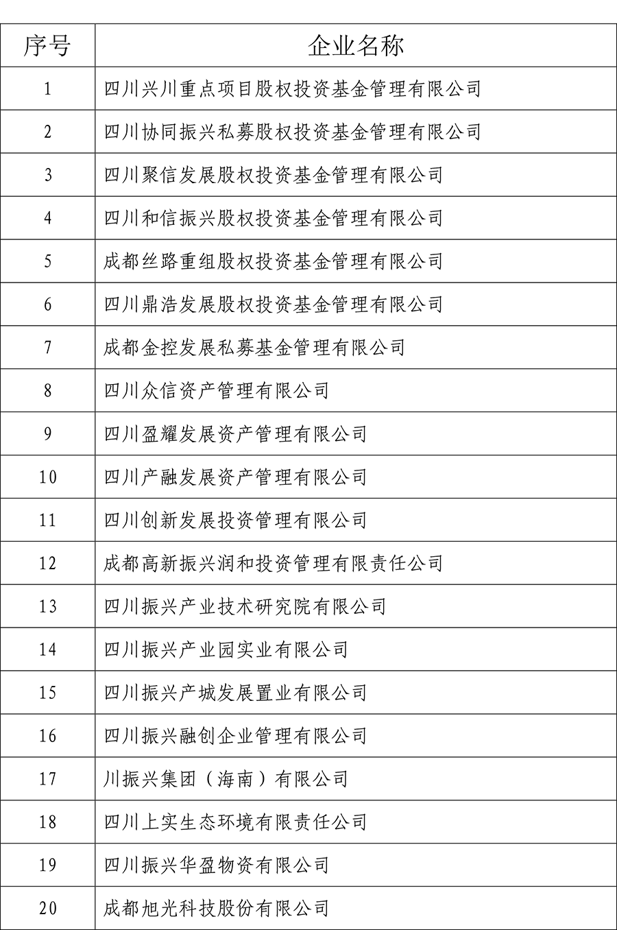 四川产业振兴发展投资基金有限公司旗下企业名单