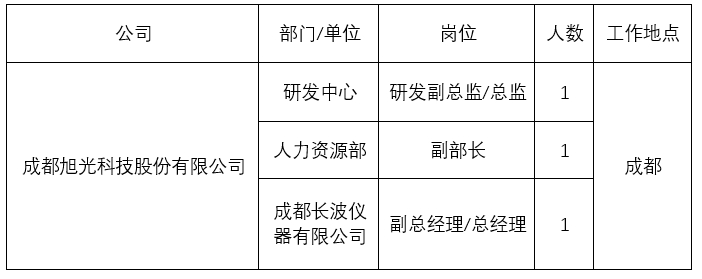 1.《成都旭光科技股份有限公司员工公开招聘岗位汇总表》