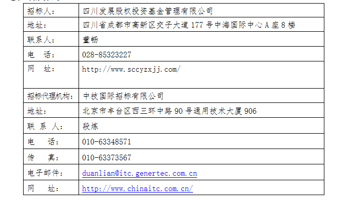 “中国采购与招标网”、“四川省政府采购网”、“中国通用招标网”、“西南产权交易所”及“四川发展股权投资基金管理有限公司”。网址如下:http://www.chinabidding.com.cn/;http://www.ccgp-sichuan.gov.cn/; http://www.china-tender.com.cn/;http://www.swuee.com/;https://www.sccyzxjj.com/