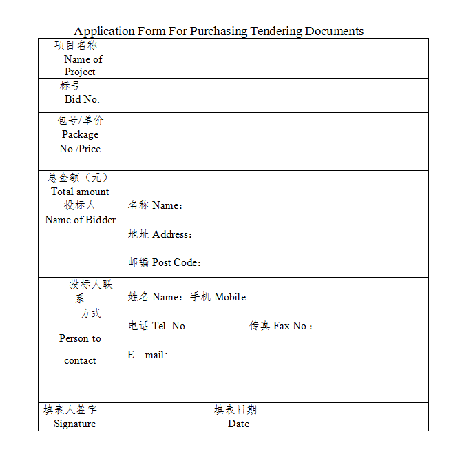 购买招标文件申请表