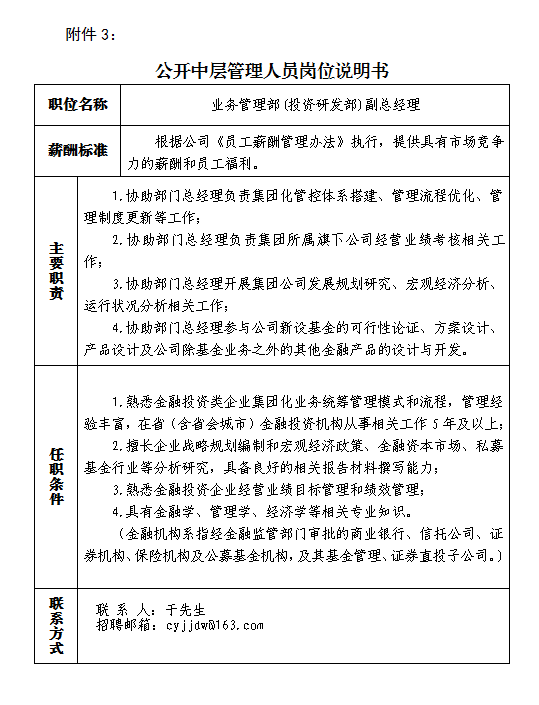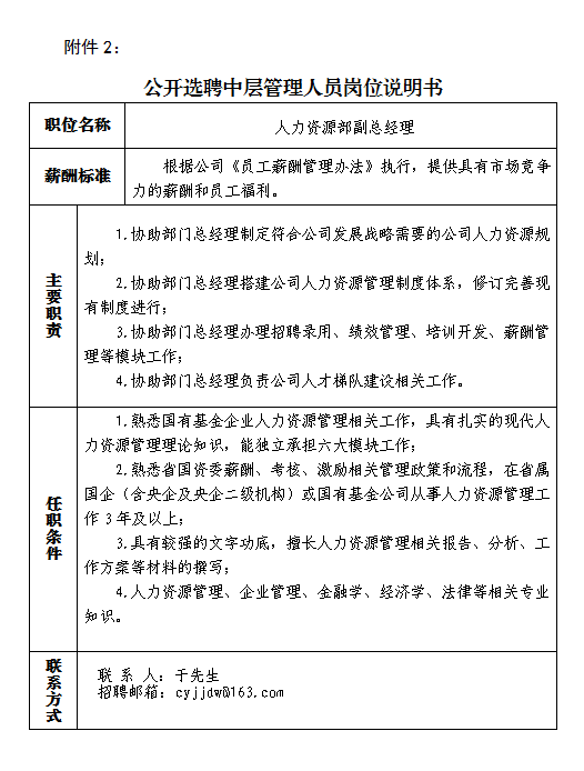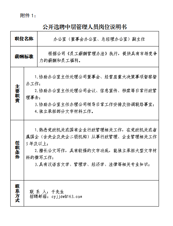 附件:1.《公开选聘中层管理人员岗位说明书》
