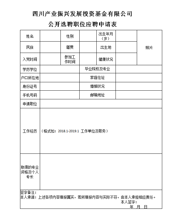 2.《公开选聘职位应聘申请表》