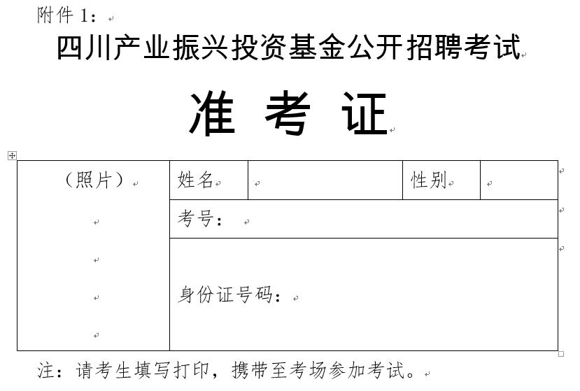 附件 1.四川产业振兴投资基金公开招聘考试准考证
