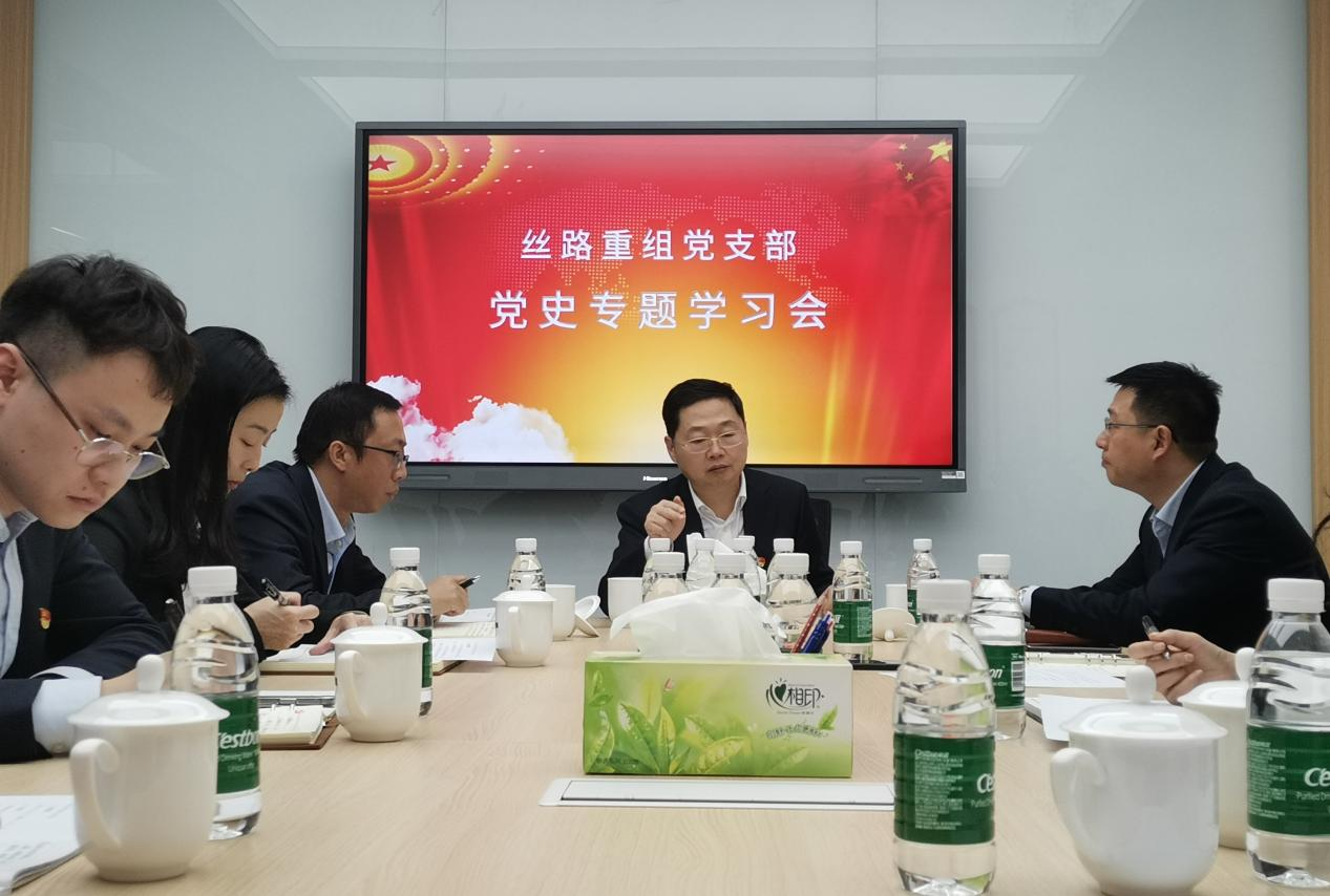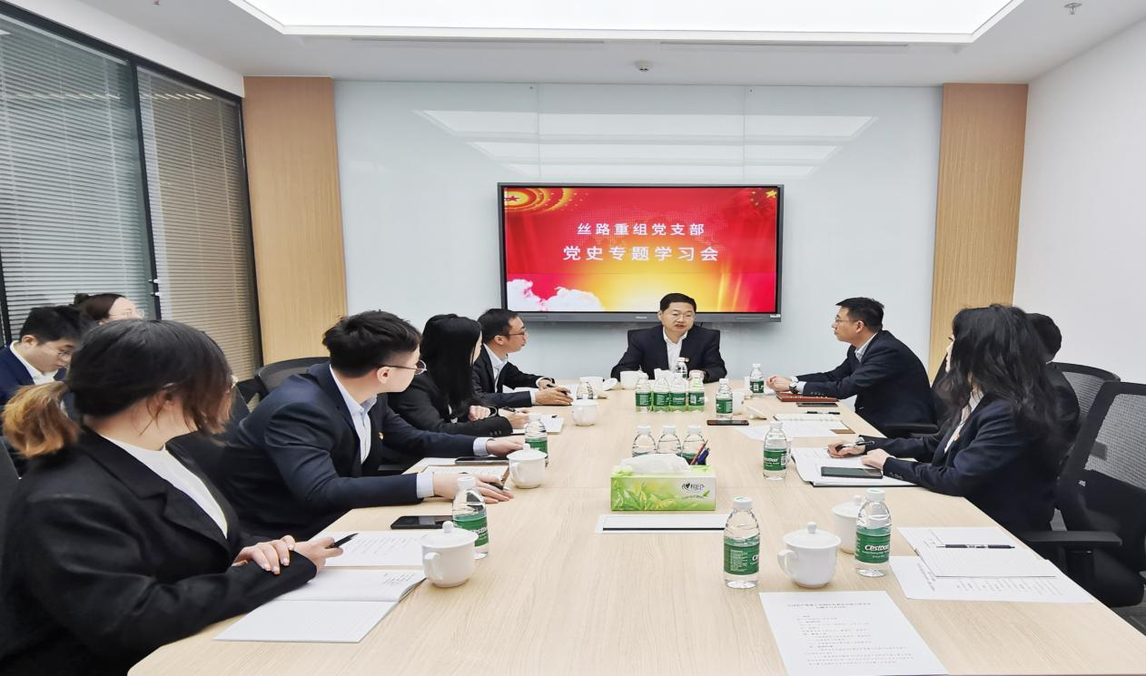 2021年11月19日上午,丝路重组党支部组织开展党史专题学习会。丝路重组党支部书记、董事长凌泽宇同志主持会议,四川振兴集团党委副书记、副董事长、总经理曾显斌同志出席会议,丝路重组全体员工参加会议。
