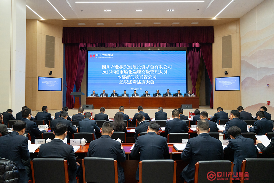 1月16日,四川产业基金在四川振兴(高新)双创基地大讲堂召开2023年度市场化选聘高级管理人员、本部部门及直管公司述职述责述廉大会。会议由党委书记、董事长黎家远主持,集团公司领导、集团公司本部部门及直管公司正副职,本部及直管公司员工代表参加会议。