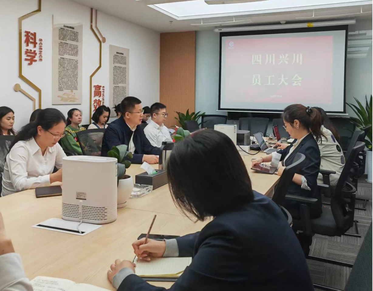 近日,四川兴川组织召开专题会传达学习集团2023年三季度经济分析会议精神,并对下一步工作进行安排部署。受功贵董事长委托,公司董事、总经理郭庆主持会议,全体员工参加会议。