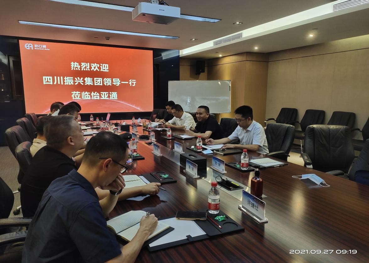 在怡亚通公司,刘怀笔一行参观了怡亚通全球供应链体验馆,与相关负责人进行详细交流。刘怀笔在交流中谈到,四川振兴集团是四川省属重点国企,近年来正大力实施“1236”总体战略,积极推动“一核三基、多维探索、多元合作”的重点业务布局,打造全国一流的基金投资、咨询顾问和科创孵化“三大平台”,建设全省最大的综合性产业投资集团,振兴实业作为四川振兴集团产业园区开发业务发展的重要战略平台,在打造特色产业园方面拥有较强的资源优势,期待与怡亚通公司合作,聚焦数字化转型基地、智慧供应链等领域,为四川产业转型升级构建新动能。怡亚通副总经理李程介绍,怡亚通公司是深圳市投资控股有限公司旗下企业,有强大的服务能力和品牌影响力,随着国家成渝双城经济圈发展规划的出台,公司将重点布局成都都市圈,有意愿联合振兴实业,通过输出怡亚通的商业模式、品牌、网络、管理、运营等优势资源与能力,共同打造立足四川、服务全国的供应链科技产业园。
