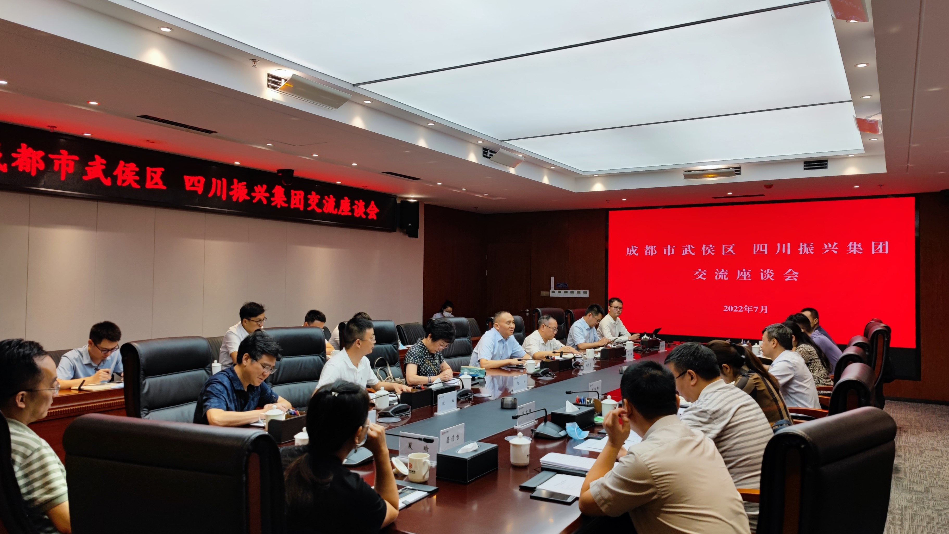 7月28日,振兴实业与武侯区人民政府召开座谈会,就中密控股地块产业规划、开发模式、开发进度等问题进行了深入探讨和交流,并就推进具体开发事项达成了一致意见。四川振兴集团总经理助理、振兴实业董事长刘怀笔,四川振兴集团总经理助理、中密控股董事长赵其春,武侯区区委副书记王毅,以及区委办、区规自局、悦湖新材料科技转化中心、武侯资本公司和中密控股、振兴实业等相关单位负责同志参加会议。