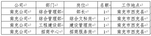 南充振兴产业园实业有限公司(简称“南充公司”)系四川振兴产业园实业有限公司下设的全资子公司,公司根据业务发展需要,现面向社会公开招聘南充公司工作人员,有关事项公告如下: