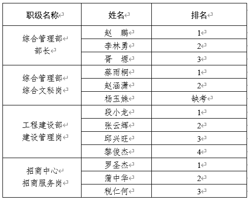 南充振兴产业园实业有限公司关于公开招聘工作人员面试结果的公告