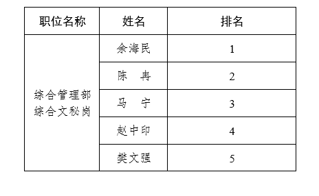 我司公开招聘工作人员面试已于2022年5月31日结束,现将面试结果公告如下: