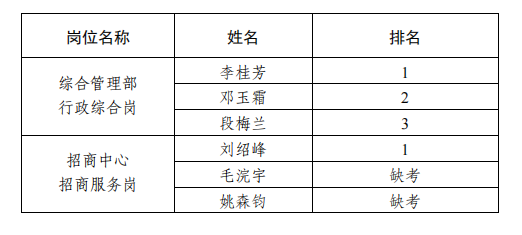 资阳振兴产业园有限公司关于公开招聘工作人员面试结果的公告