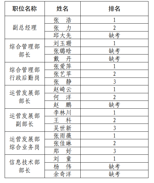 我司公开招聘工作人员面试已于2022年9月29日结束,现将面试结果公告如下: