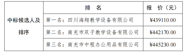 南充振兴产业园实业有限公司公寓配套设施询价采购项目已完成询价采购,现将询价比选结果公告如下: