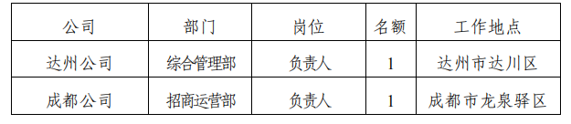 达州振兴产业园有限公司综合管理部负责人1人