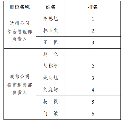 我司下属公司2023年公开招聘工作人员面试已于2023年11月1日结束,现将面试结果公告如下: