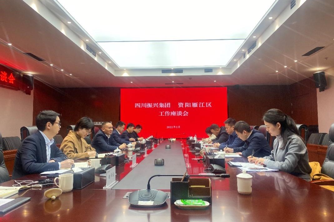 2022年2月9日,四川振兴集团总经理助理、振兴实业董事长刘怀笔与资阳雁江区委副书记、区人民政府区长杨天学一行进行座谈,双方就四川振兴装备制造产业园项目在合作模式、项目落地计划等方面进行了深入交流。振兴实业常务副总经理曾云川、副总经理蒋楠参加座谈。