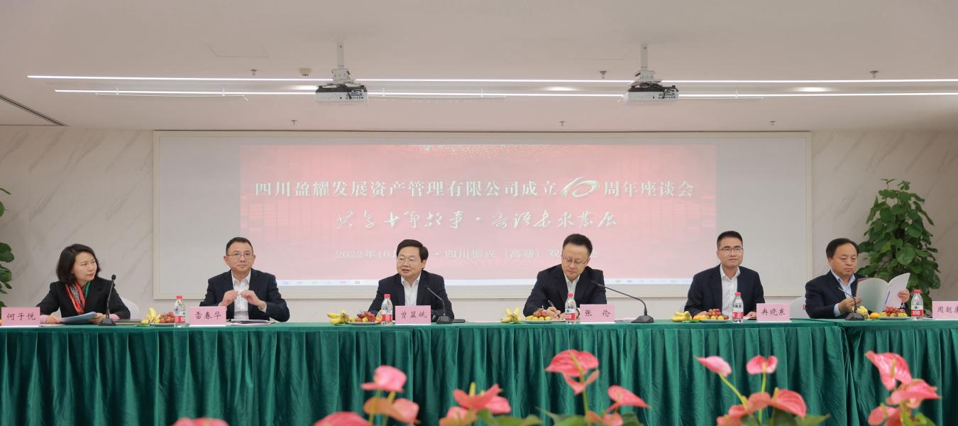 10月28日下午,四川盈耀召开建司十周年座谈会,回眸发展历程,畅谈未来发展。集团党委副书记、副董事长、总经理曾显斌出席座谈会并讲话。集团业务管理部总经理、四川盈耀监事冉晓东,四川产城董事长周朝康,以及曾经在四川盈耀工作过的员工代表应邀出席座谈会;四川盈耀全体员工及四川盈耀下属公司经营班子成员参加座谈会。座谈会以“共享十年故事·寄语未来发展”为主题,回顾了四川盈耀在集团公司党委和董事会的领导下,十年创业、砥砺奋进的发展历程。