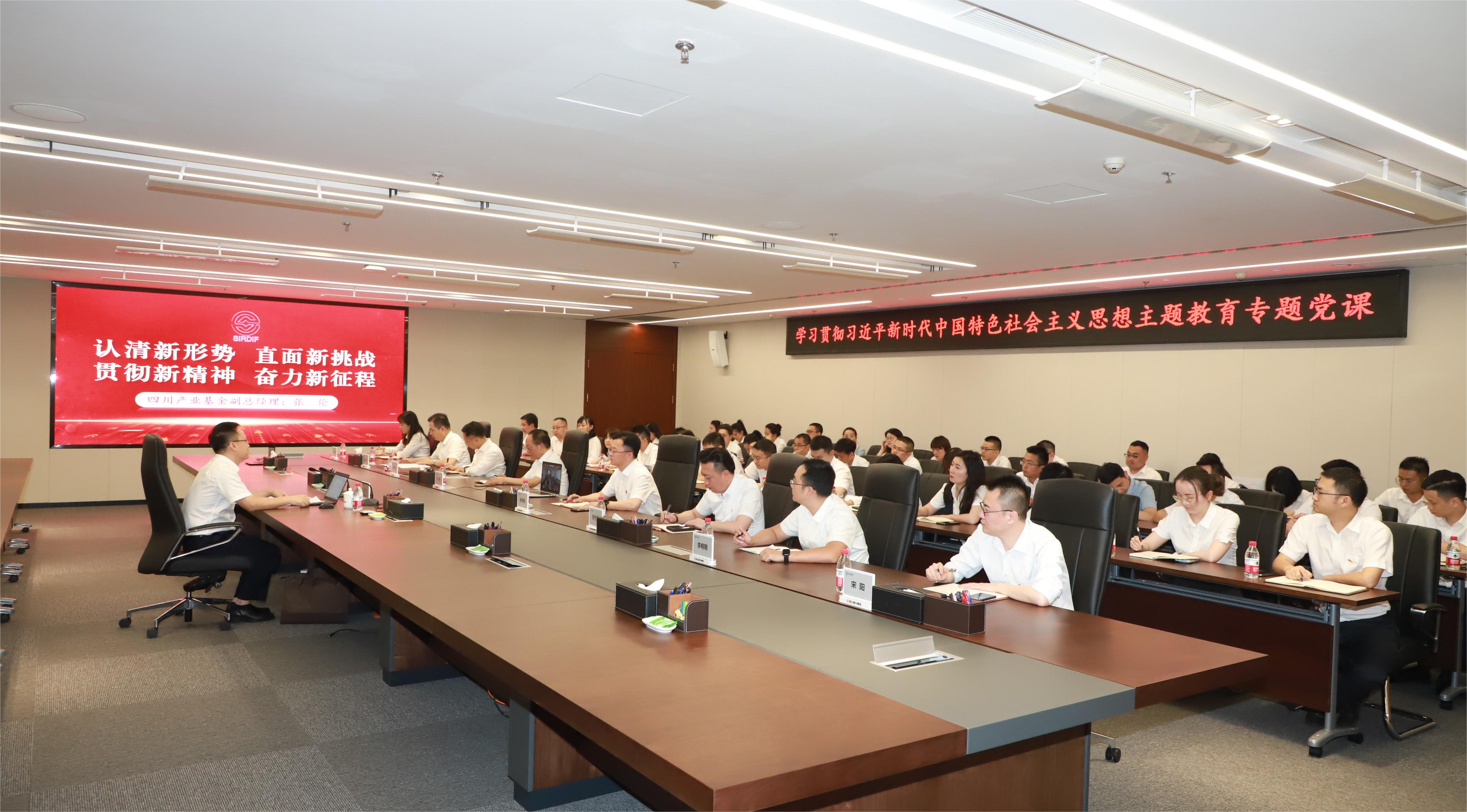 根据主题教育工作安排,7月21日,四川产业基金副总经理张伦以《认清新形势直面新挑战贯彻新精神奋力新征程》为题,为分管机构党员干部讲授专题党课。