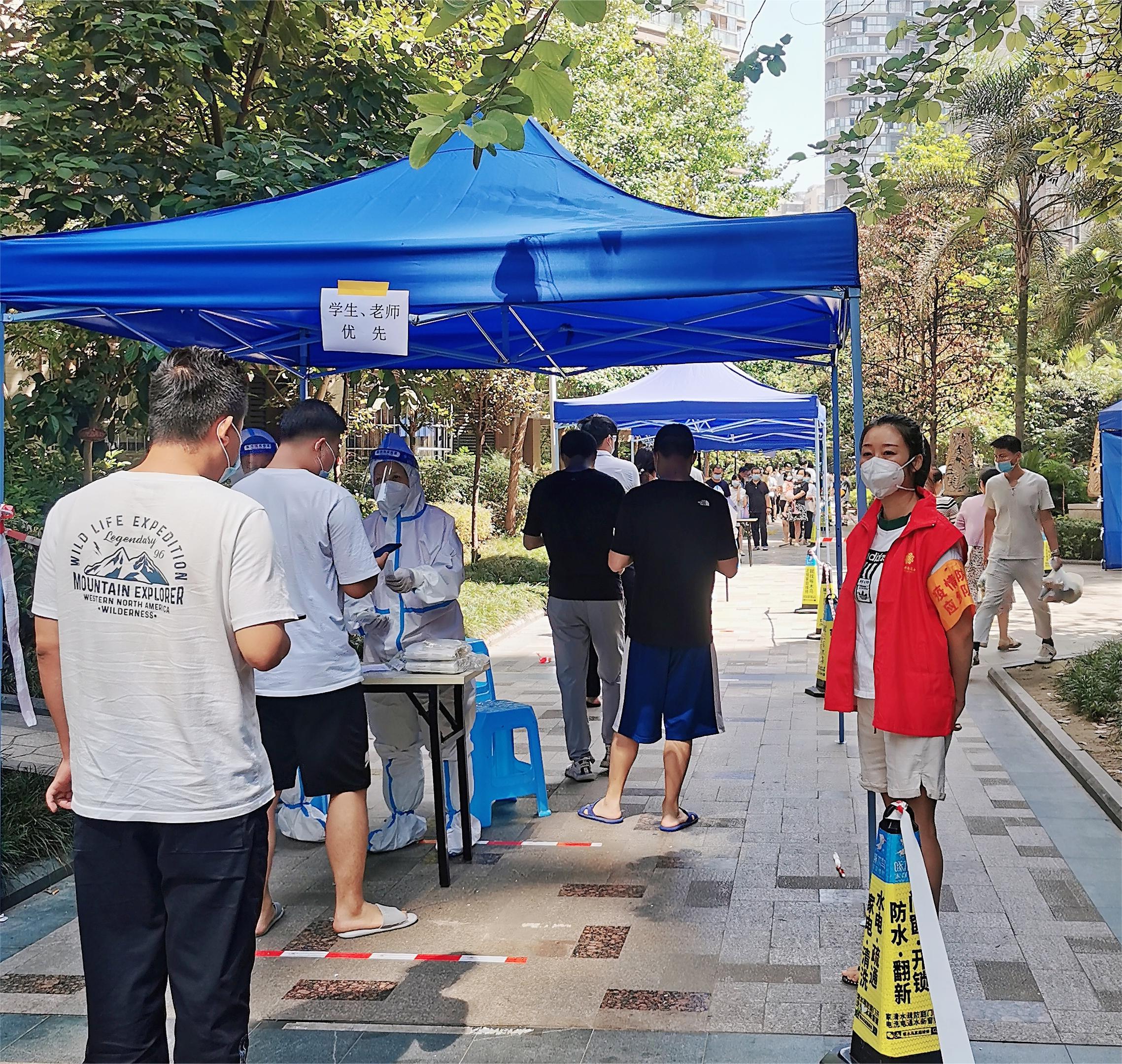 “2013年芦山地震的时候,我报名参加志愿者,结果因为各种原因没能去到抗震救灾一线,我遗憾到现在。所以,在党支部和家人的感召下,我于9月3日报名参加了志愿服务。每天按时站在核酸队伍旁边,维持核酸检测队伍的秩序,帮助行动不便的老年人排队,以及解答邻居们的一些疑问,虽然每天的事情都不复杂,但是,从第一天到第十天,越来越多排队检测核酸的邻居开始给我点赞,给我说辛苦了,有种说不出的幸福感。”唐芳方的朋友圈儿写下的这段话证明,她参加志愿者服务,不仅完成了自己的心愿,更得到了他人的认可。参与抗击疫情,不仅响应了组织号召,也寻找到了个人价值。