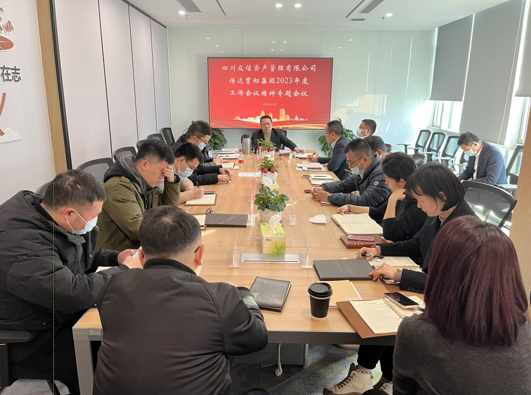 1月18日,四川众信召开专题会议,传达学习集团2023年度工作会议精神,会议由党支部书记、董事长、总经理金宏主持。